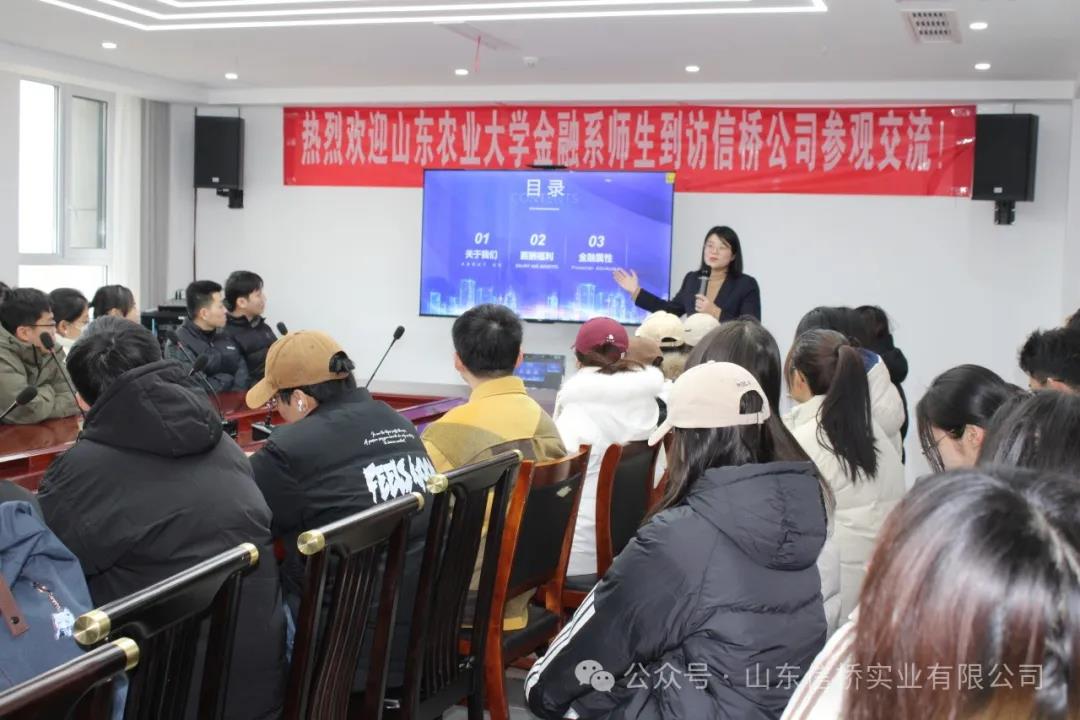 12月10日,山東信橋?qū)崢I(yè)有限公司迎來了山東農(nóng)業(yè)大學(xué)經(jīng)管學(xué)院金融系師生的參觀交流。