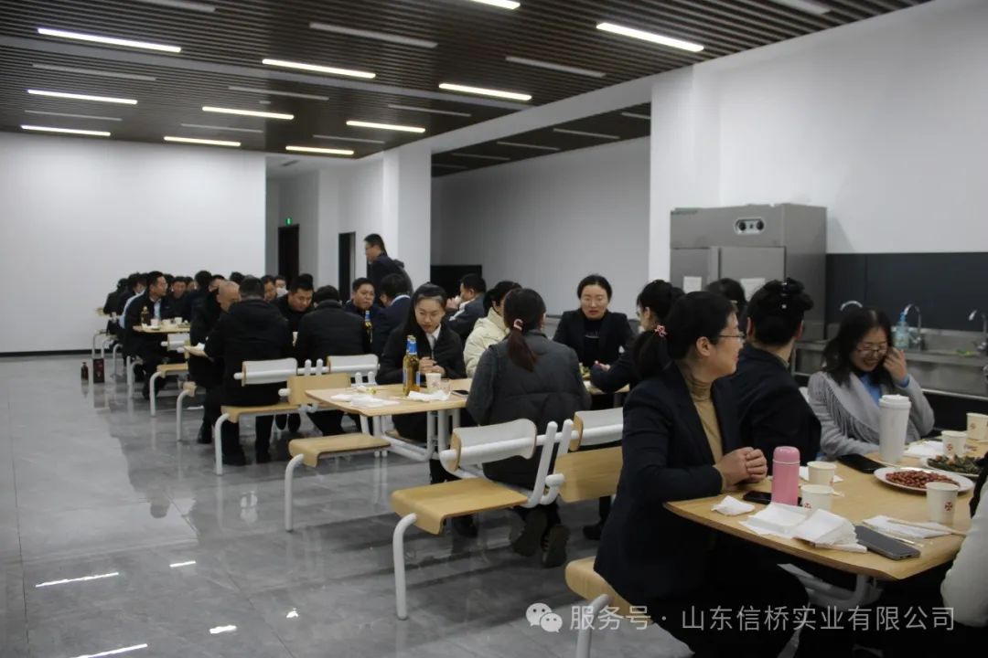 會(huì)議結(jié)束后,所有的信橋員工在公司餐廳聚餐進(jìn)行年會(huì)慶祝,現(xiàn)場(chǎng)氣氛熱烈歡快。